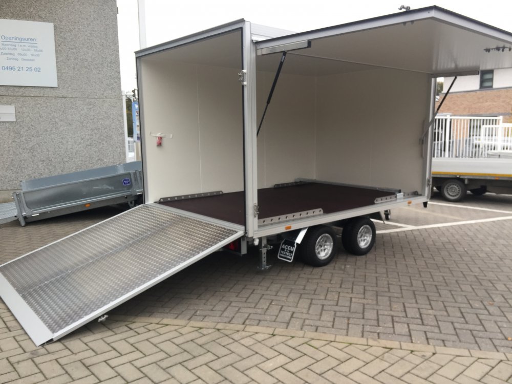 De aanhangwagens zijn aan de binnenkant voorzien van touwhaken, degelijke verlichting en een antislip vloerplaat van 18 mm. Door het vele gebruik van aluminium profielen is deze aanhangwagen zeer licht van eigengewicht.