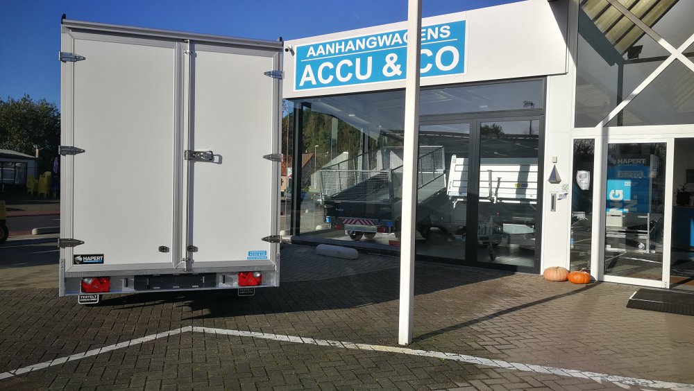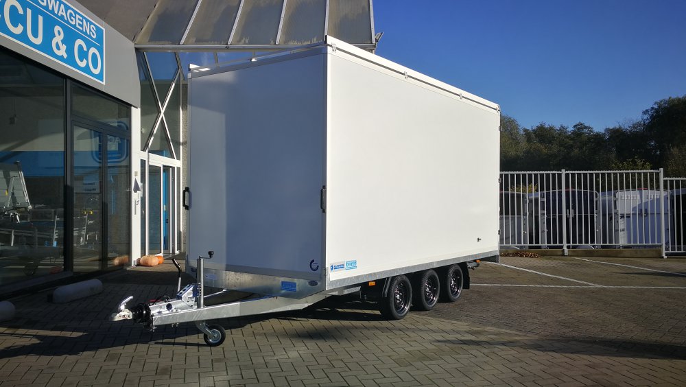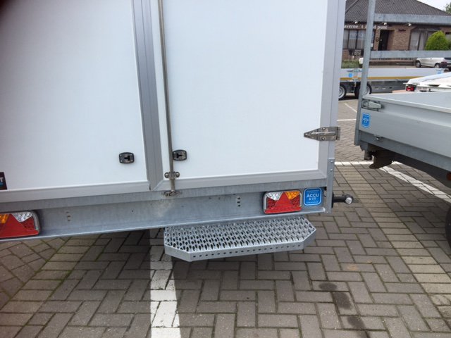 De 4m55, 5m05 en 6m05 lang hebben standaard een gesloten opbouw van 25 mm dikke wanden - 2 achterdeuren