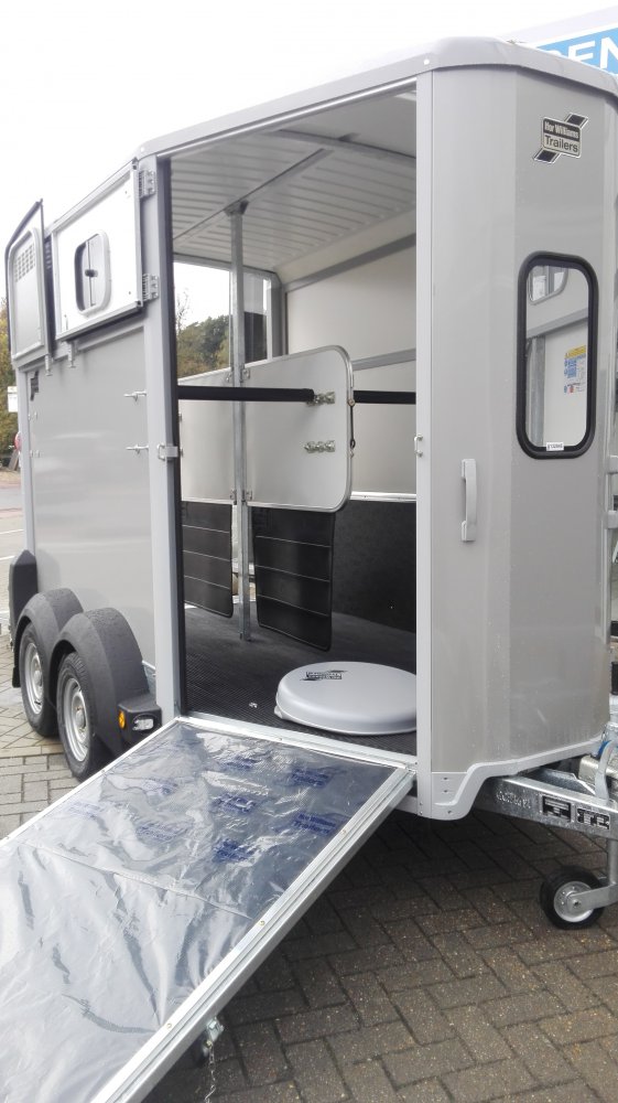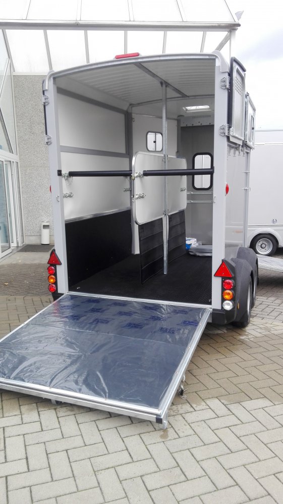 - Groot voorraam (hierdoor kijkt u "door" de trailer naar uw paarden)