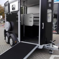 Vraag informatieDe HB506 is onze meest populaire tweepaardstrailer. De HB506 kan 2 paarden tot 16.22hh transporteren. Deze modellen zijn voorzien van een paar zijvensters en exclusief voor de tweepaardstrailer, een aanzienlijk groter venster vooraan, wat meer licht in de trailer brengt. De middenverdeling, borst- en bilstangen zijn standaardwaarden tot 16.2hh.