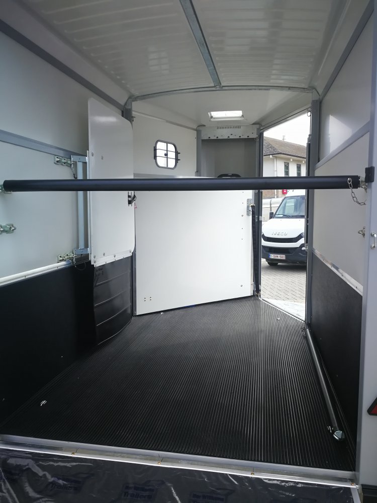 - Groot voorraam (hierdoor kijkt u "door" de trailer naar uw paarden)