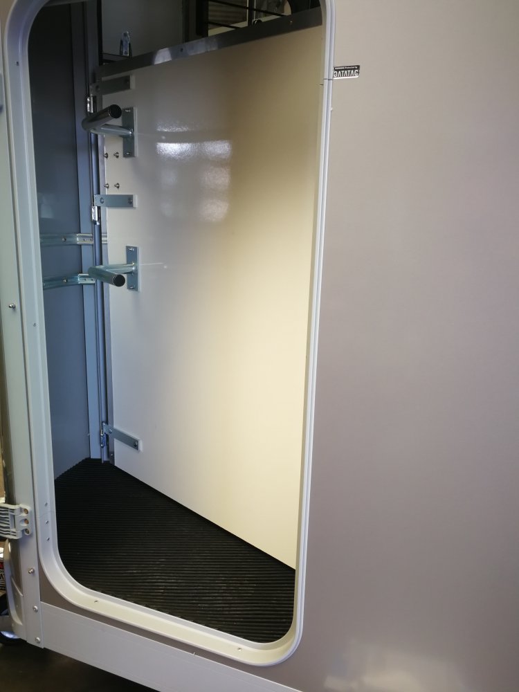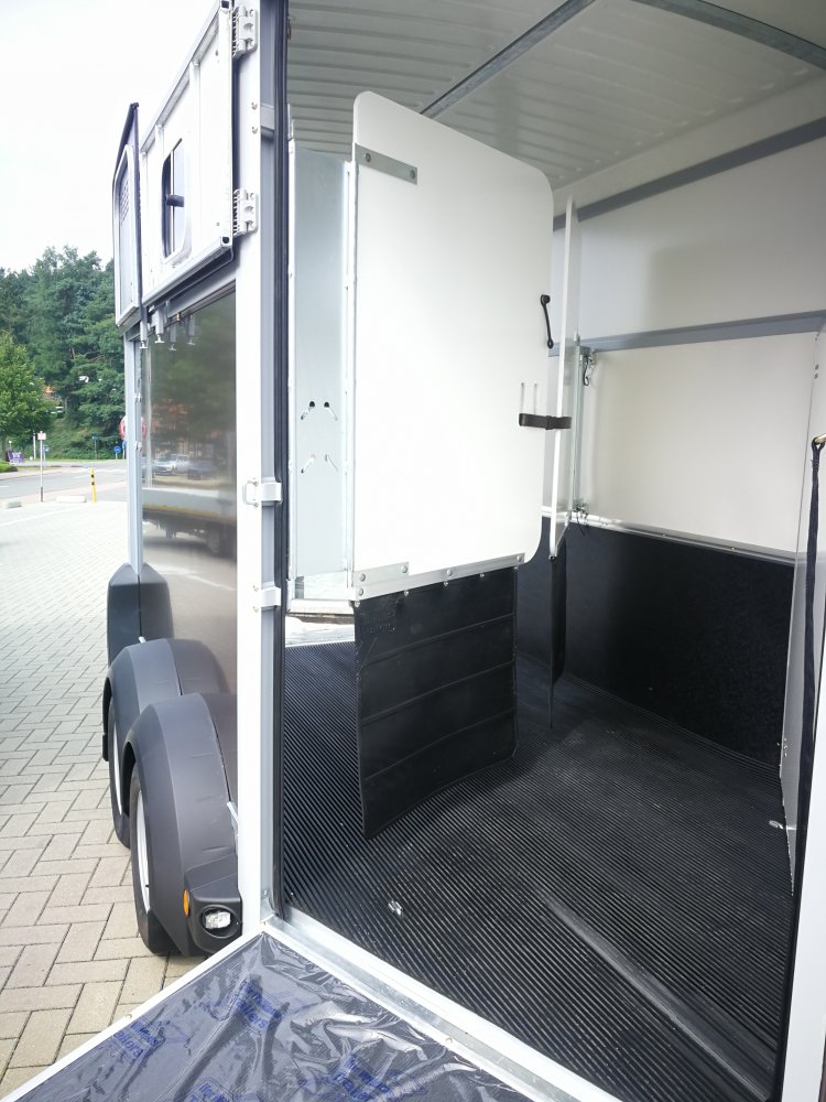 - Rubbermat op de vloer. Makkelijk uitneembaar wat het gemakkelijk maakt om de trailer te reinigen en de desinfecteren.