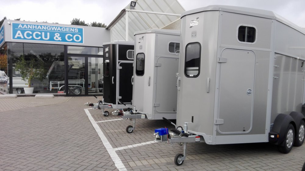 De HB506 is onze meest populaire tweepaardstrailer. De HB506 kan 2 paarden tot 16.22hh transporteren. Deze modellen zijn voorzien van een paar zijvensters en exclusief voor de tweepaardstrailer, een aanzienlijk groter venster vooraan, wat meer licht in de trailer brengt. De middenverdeling en borst- en bilstangen zijn standaardwaarden tot 16.2hh.