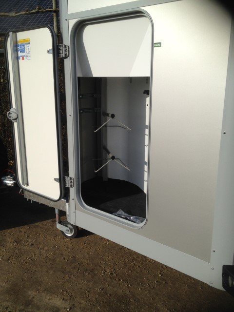 - Groot voorraam (hierdoor kijkt u "door" de trailer naar uw paarden)