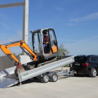 Vraag informatieZijdelingskipper en kantelbare machine transporter of autotrailer in 1 aanhangwagen